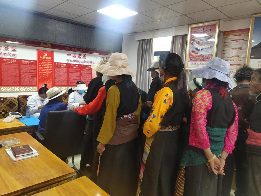 當日上午,日喀則市西華醫(yī)院醫(yī)護人員在切娃鄉(xiāng)黨委協(xié)助下,將體檢設(shè)備帶到各村村委會,為群眾進行義務(wù)健康體檢。體檢項目包括B超、心電圖、血常規(guī)、尿常規(guī)、肝腎功能、血糖、血脂和血壓等。體檢過程中,醫(yī)生們向群眾耐心地講解飲食起居方面注意事項與養(yǎng)生保健知識,解答常見病、多發(fā)病的預(yù)防診治等問題,努力推動農(nóng)牧民群眾們實現(xiàn)“無病早預(yù)防、有病早治療、健康有保障”。